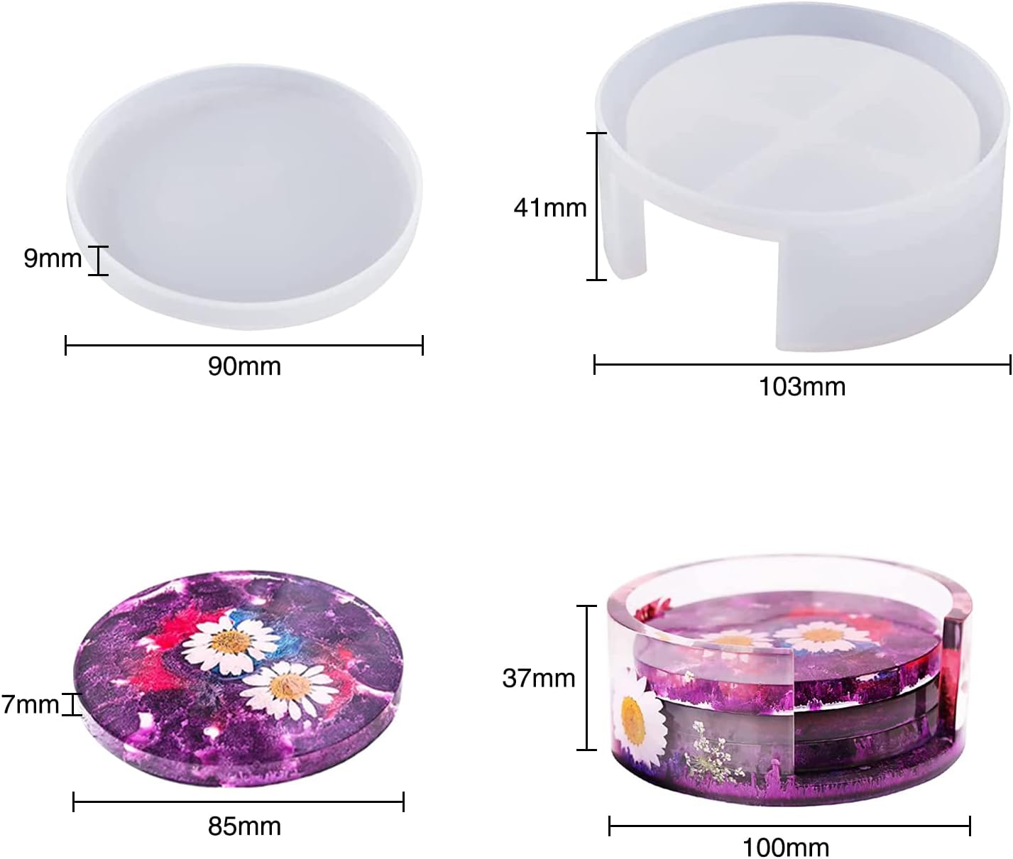 Acest set de matrițe din silicon este conceput pentru realizarea suporturilor de pahar rotunde, împreună cu suportul (holder) dedicat, oferind un design elegant și practic. Este ideal pentru proiecte handmade, permițând obținerea unor coastere personalizate, cu finisaj neted și aspect profesional.