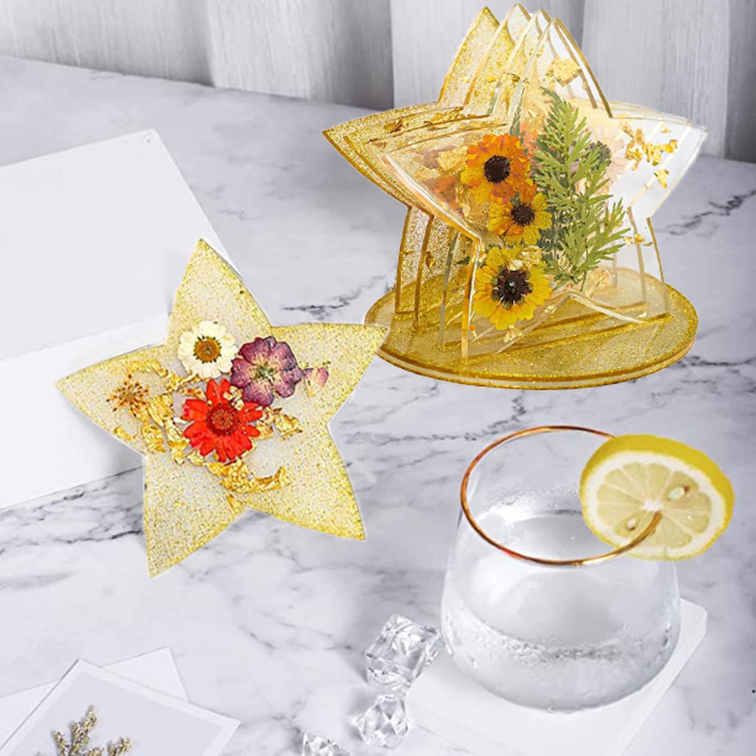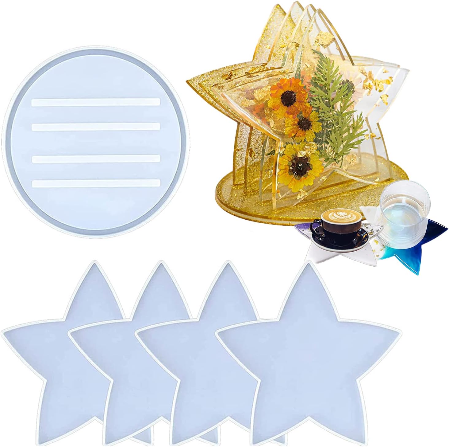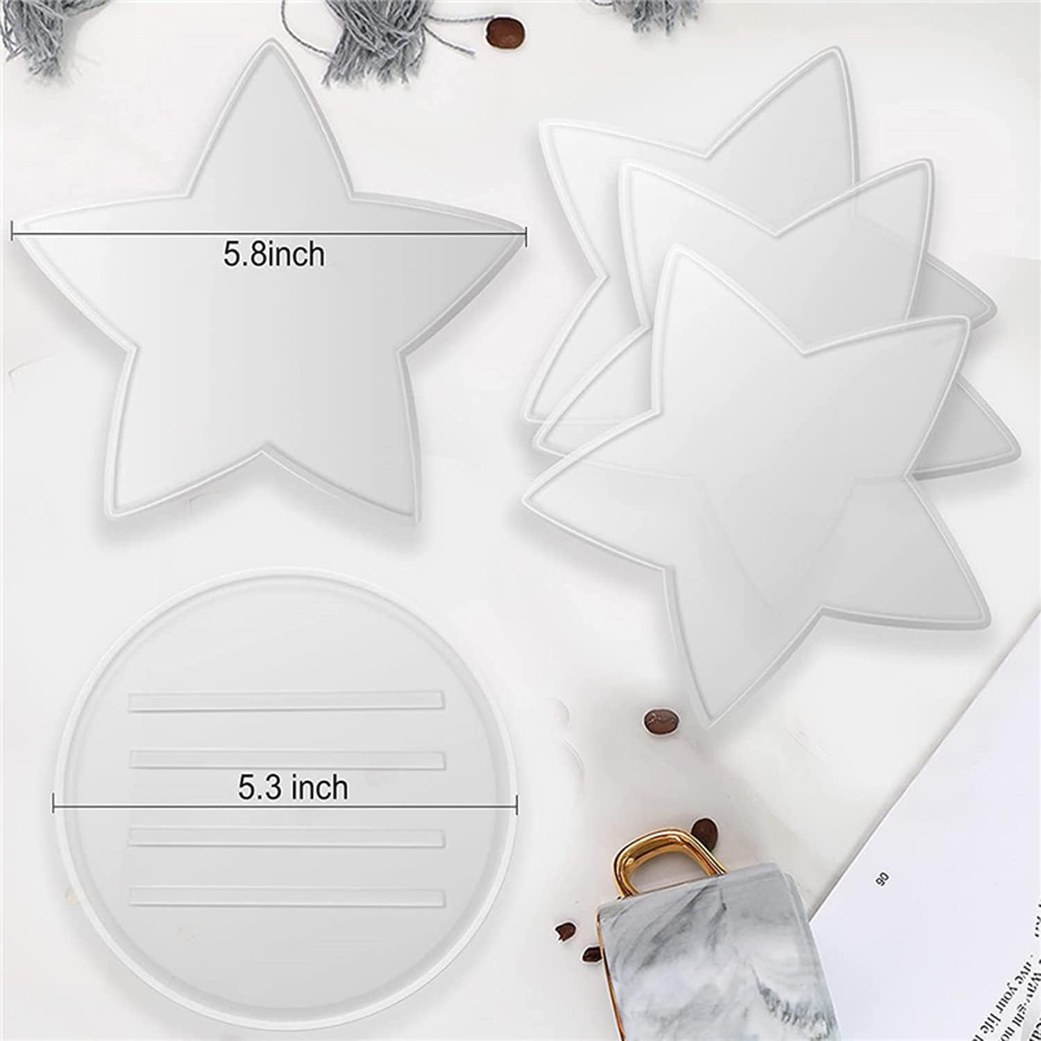 Setul de matrițe din silicon pentru suport pahar în formă de stea este ideal pentru realizarea unor coastere decorative, cu design original și atractiv. Formele variate incluse în set permit crearea unor piese unice, potrivite atât pentru uz zilnic, cât și pentru cadouri handmade.
